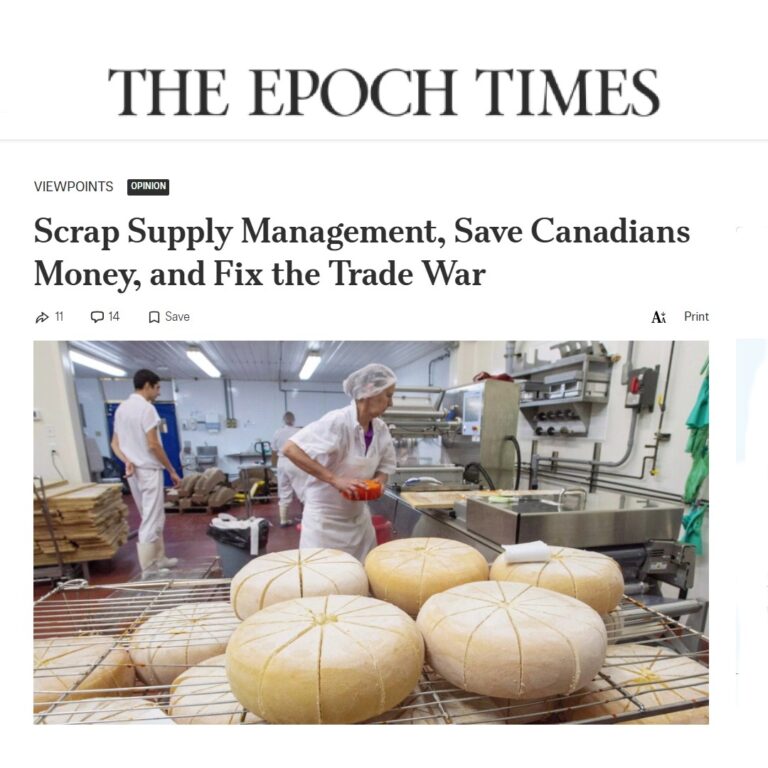 EPOCH TIMES COLUMN: Scrap Supply Management, Save Canadians Money, and Fix the Trade War